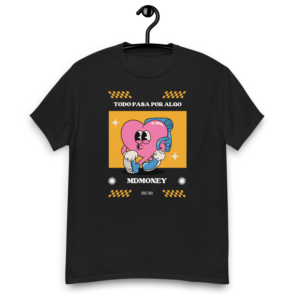 Lleva contigo una prenda única que captura el espíritu de nuestro álbum más reciente, "Todo pasa por algo". Esta camiseta unisex de 100% algodón presenta un diseño exclusivo con un corazón silbando mientras camina, acompañado de la frase "Todo pasa por algo". Es un recordatorio de que, en cada paso de la vida, siempre hay algo que aprender 🧡